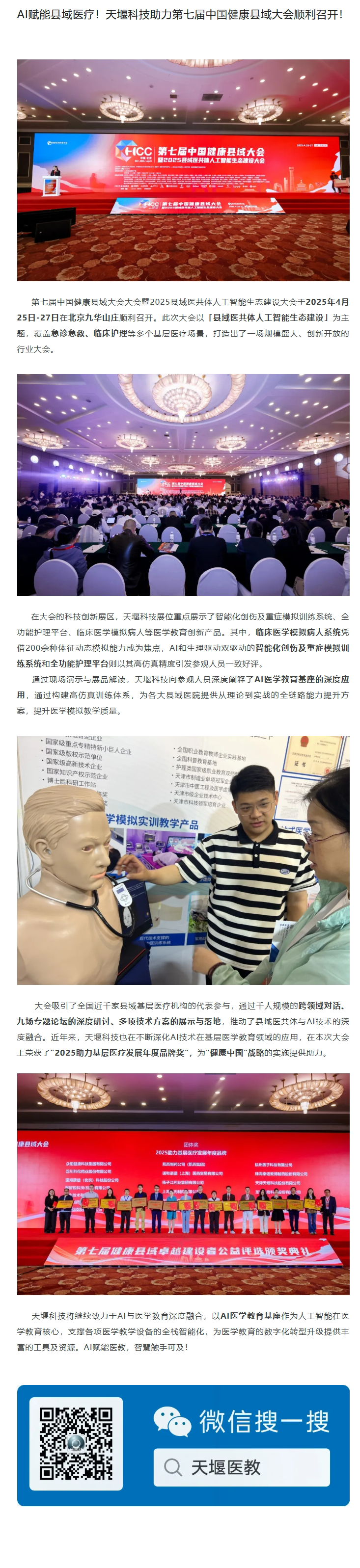 AI赋能县域医疗!天堰科技助力第七届中国健康县域大会顺利召开!